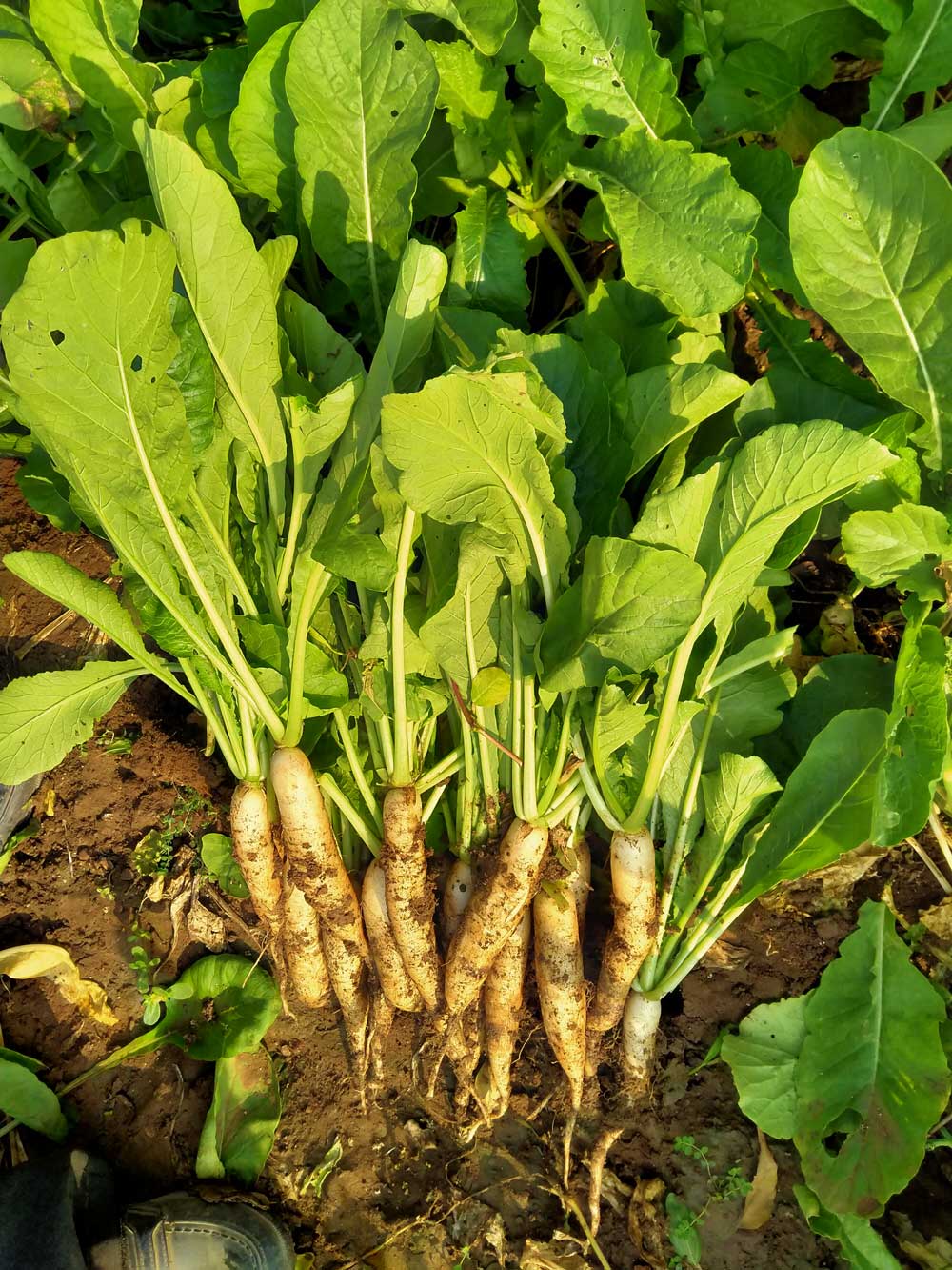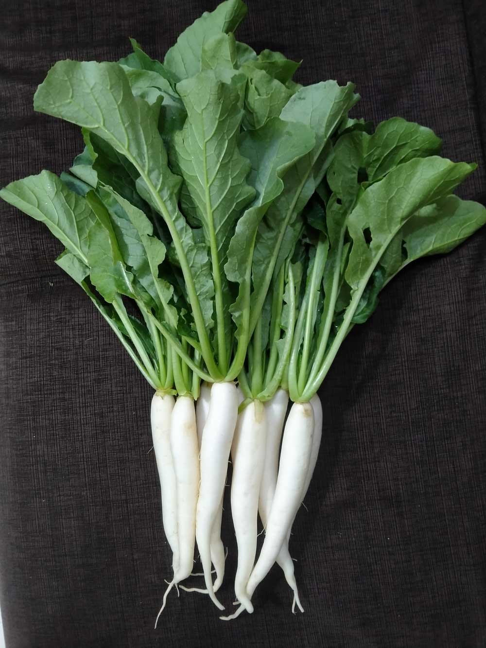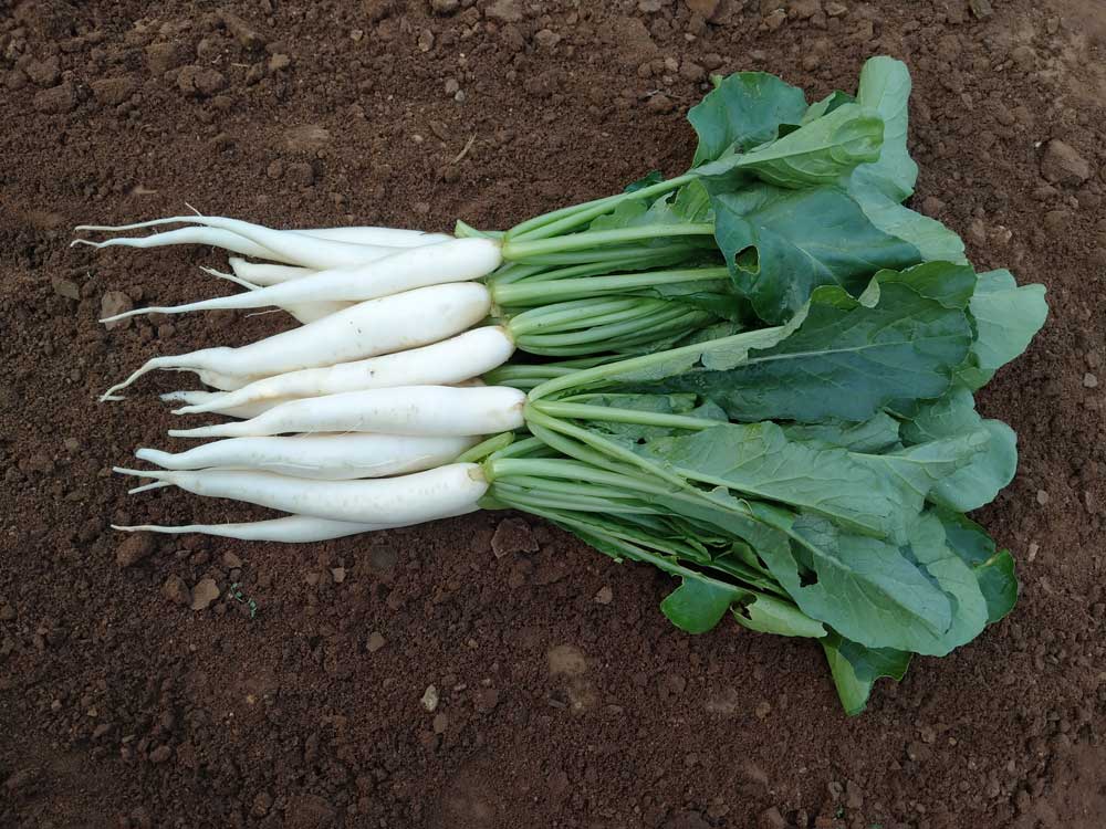 Segment: Tropical/pusha check Plant: Dark green leaves Colour: Glossy white Size : 25-30 x3.5 cm Surface: Smooth Pungency: Medium Maturity: 30-35 days after sowing.